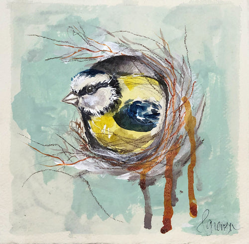 Original Watercolor - Chickadee Watercolor and Charcoal
