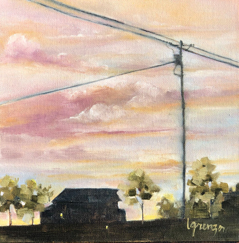 Original Oil Painting, Farm Silhouette at Sunset - 8" x 8" Canvas Panel (Ready for Frame)